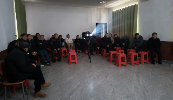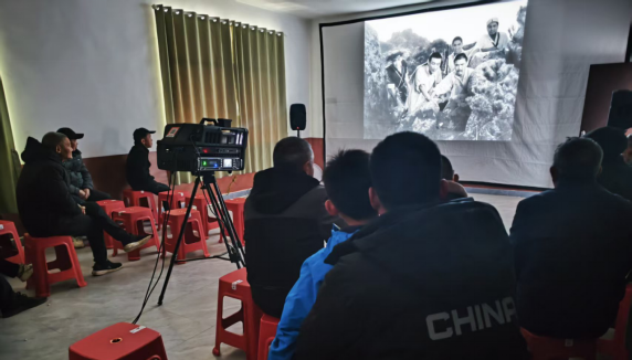 活动前期,陈家湾村“两委”提前完成电影室卫生打扫、布置、桌椅摆放、放映设备调试等筹备工作。下午2时许,男女老少都陆续来到放映现场,大家围坐在一起,闲话家常,期待着电影的开播,原本宁静的广场瞬间变得热闹非凡。