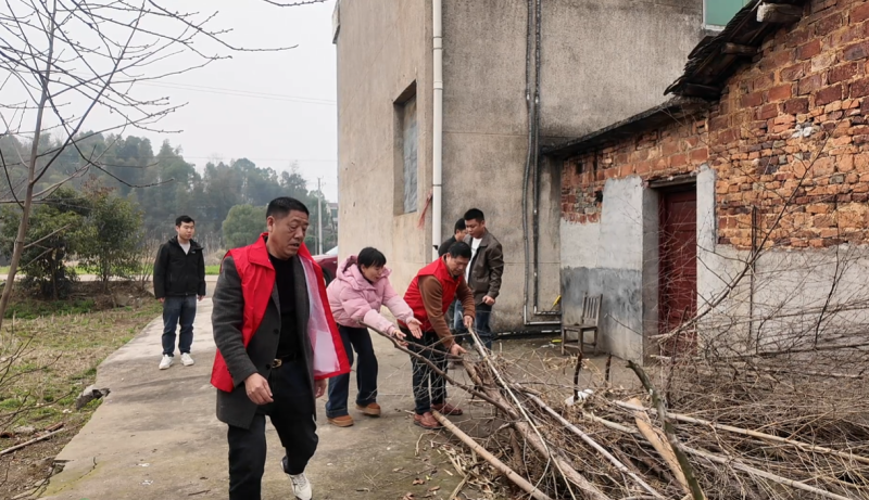 村干部和志愿者一道帮助村民整理庭院 莫斌 摄