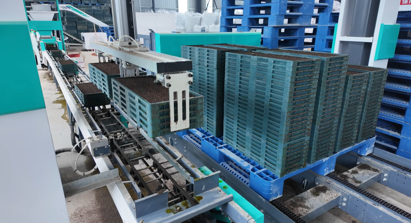 育秧是春耕首要环节。在该公司育秧车间,高速育秧流水线全速运转,置秧盘、覆底土、播种等标准化工序一气呵成。“2个人就能操作,每小时育秧2000盘,效率比普通育秧流水线提升250%,还能节约6名人工。”刘平说,流水线作业让种子分布更均匀,既保障秧苗生长空间,也降低了种子损耗。育秧盘经暗室催苗后,由无人配送车精准送达育秧棚,实现“育、运、管”无缝衔接。