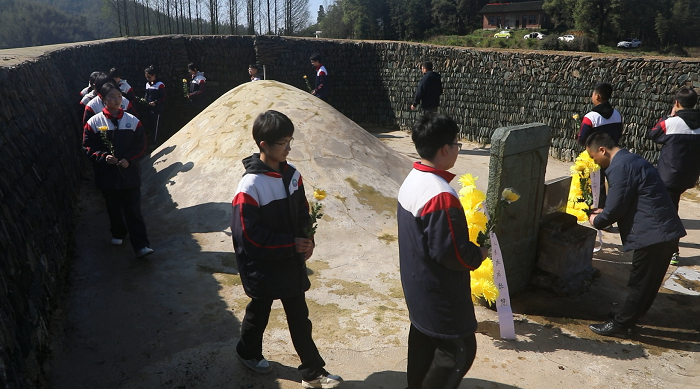 4月1日上午,武潭镇组织镇村干部、退役军人代表、学校师生等各界人士,在新铺子村夏思痛墓扫墓祭奠。