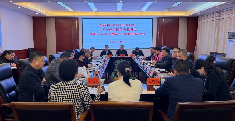 会议解读了《政协桃江县委员会2026年重点提案〈关于破解民营企业困境,赋能产业立县战略的提案〉督办调研实施方案》。提案人就提案背景和初衷发言。并听取桃江民营企业发展现状汇报。