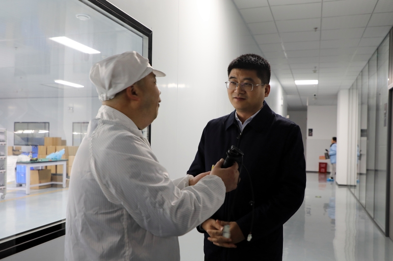 沈澍首先来到灏博电子科技(湖南)有限公司,走进生产车间,详细了解企业整体规划、产品性能与市场销售等情况。他鼓励企业要坚定发展信心,抢抓市场机遇,加快产能释放,力争在新一年实现更大突破。