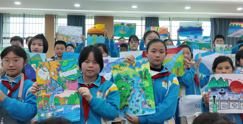 讲台上,巾帼河长们立足日常巡河护河、河道清理、水源保护等工作经历,用朴实的语言向孩子们讲述守护家乡河湖的点点滴滴。活动现场同步展示了“世纪画卷·我的家乡河”主题征文绘画比赛优秀作品。孩子们以笔为媒、以画传情,一幅幅佳作描绘家乡河湖的秀美风光,一篇篇文稿书写节水护水的暖心故事。在作品分享环节,孩子们讲述创作心得,字里行间、笔墨之中饱含着对家乡河湖的深情。
