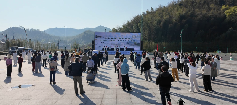 4月1日,桃江县2026年首场八段锦、太极拳公益培训在桃花江竹海景区正式启动。