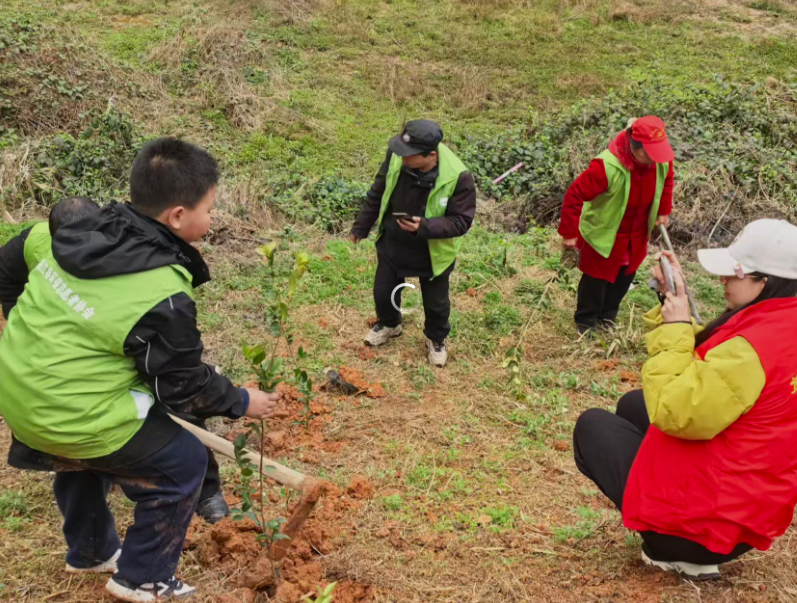 至宇华农庄后,植树现场热闹非凡,志愿者们三五一组,各有分工,有的挥锄挖土,有的扶苗填坑,有的挥锹培土,有的夯实土层,每道工序都有条不紊,衔接有序。经过一个多小时的栽种,一排排新栽的树苗在春风里昂然挺立,大家齐心协力为大地增添绿色,以实际行动践行着“绿水青山就是金山银山”的理念。