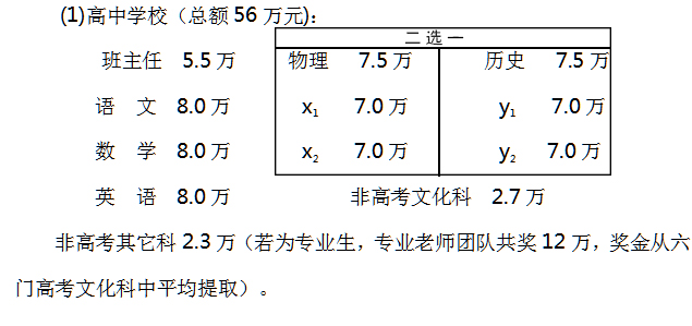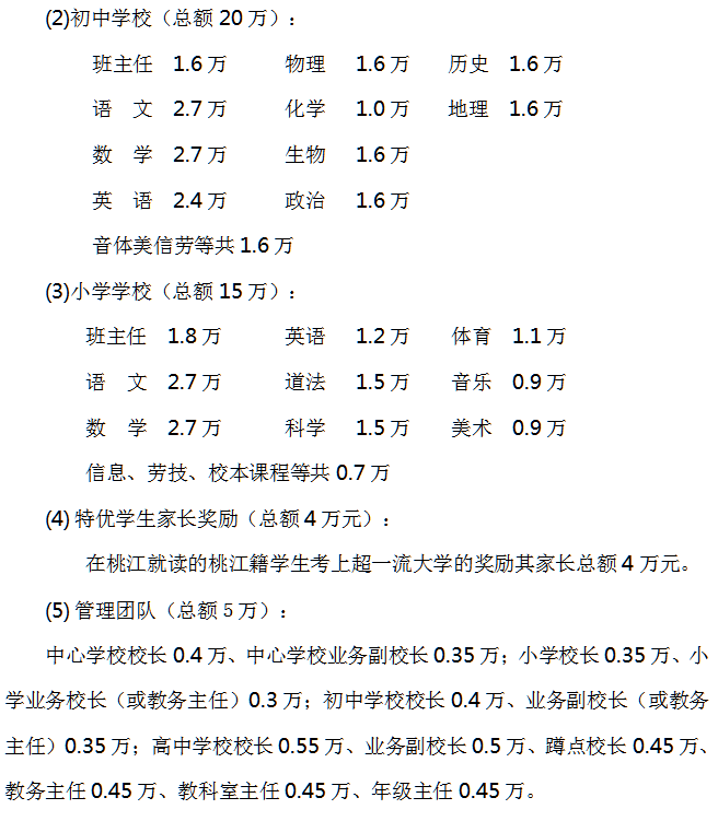 2.各学段所任职任教科目管理人员和老师的奖励标准。