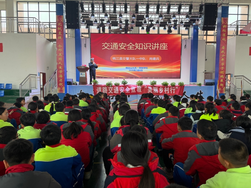 在桃谷山九年一贯制学校、三堂街镇完小,民警化身“老师”与近4000名学生面对面,结合学生出行特点,用通俗易懂的方言,讲解步行、骑行、乘车等日常出行的安全要点。针对校园周边“鬼探头”、车辆盲区、不戴头盔、横穿马路等常见风险,交警通过真实案例拆解危害,让学生直观掌握避险技巧。互动环节中,民警提问,孩子们踊跃举手、积极回答,现场氛围热烈。