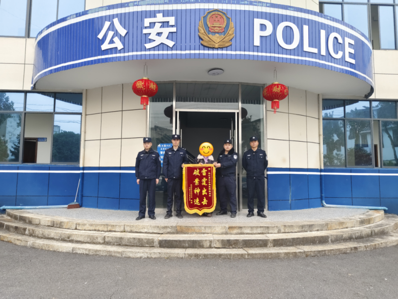 近日,武潭镇一百货店商家将一面印有“雷霆出击 破案神速”的锦旗送到武潭派出所,致谢民辅警快速破获盗窃案,为其全额追回被盗财物。